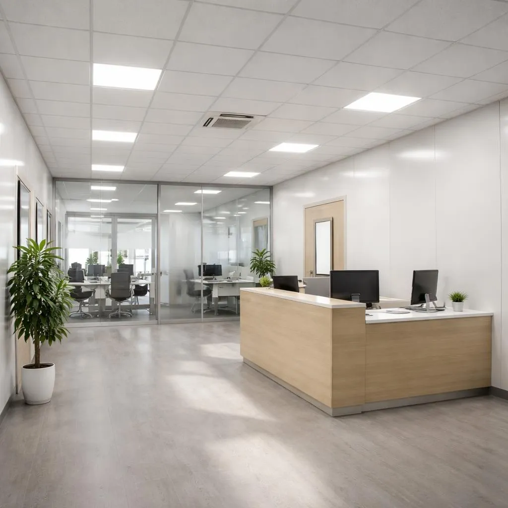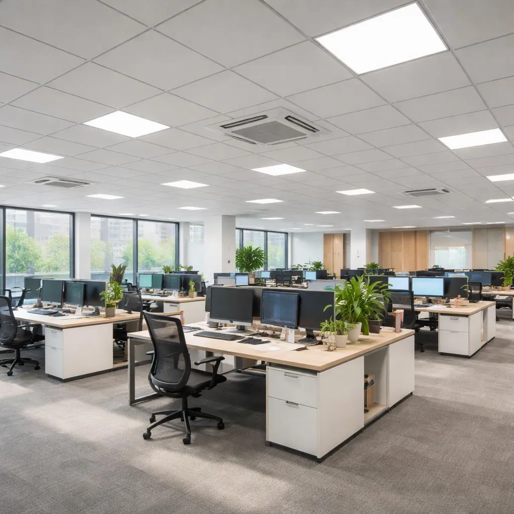 Modern suspended ceiling installations for corporate offices and business spaces. Our office ceiling solutions improve acoustics, enhance lighting distribution, and provide a professional appearance. We design ceilings that create productive work environments while concealing HVAC and electrical systems neatly. Our expert team specializes in professional installation that meets the highest standards of quality and durability.