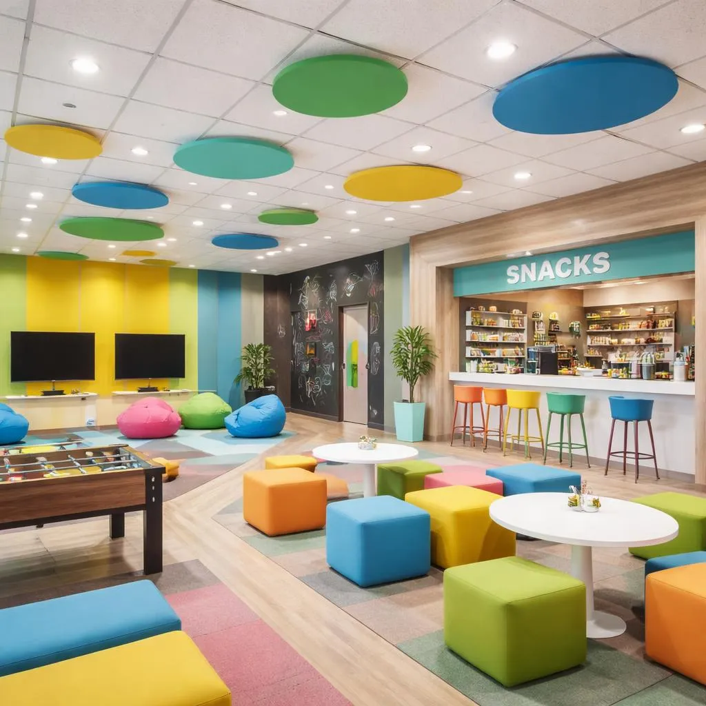 Vibrant suspended ceiling solutions for youth clubs, community centres, and recreational facilities. Our youth space ceilings combine durability with contemporary design to create engaging environments. Featuring excellent acoustics and easy maintenance for high-traffic areas.
